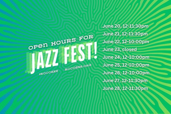 June 20, 2025 - June 28, 2025June 20 - June 28, 2025 Stop by RoCo during Jazz Fest! Fri. 6/20, 12pm…