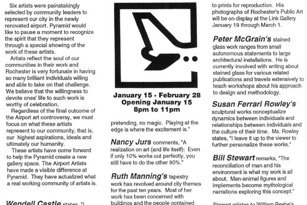 January 19, 1991 - February 17, 1991January 19, 1991 - February 17, 1991 Upstate Invitational features the work of eight local…