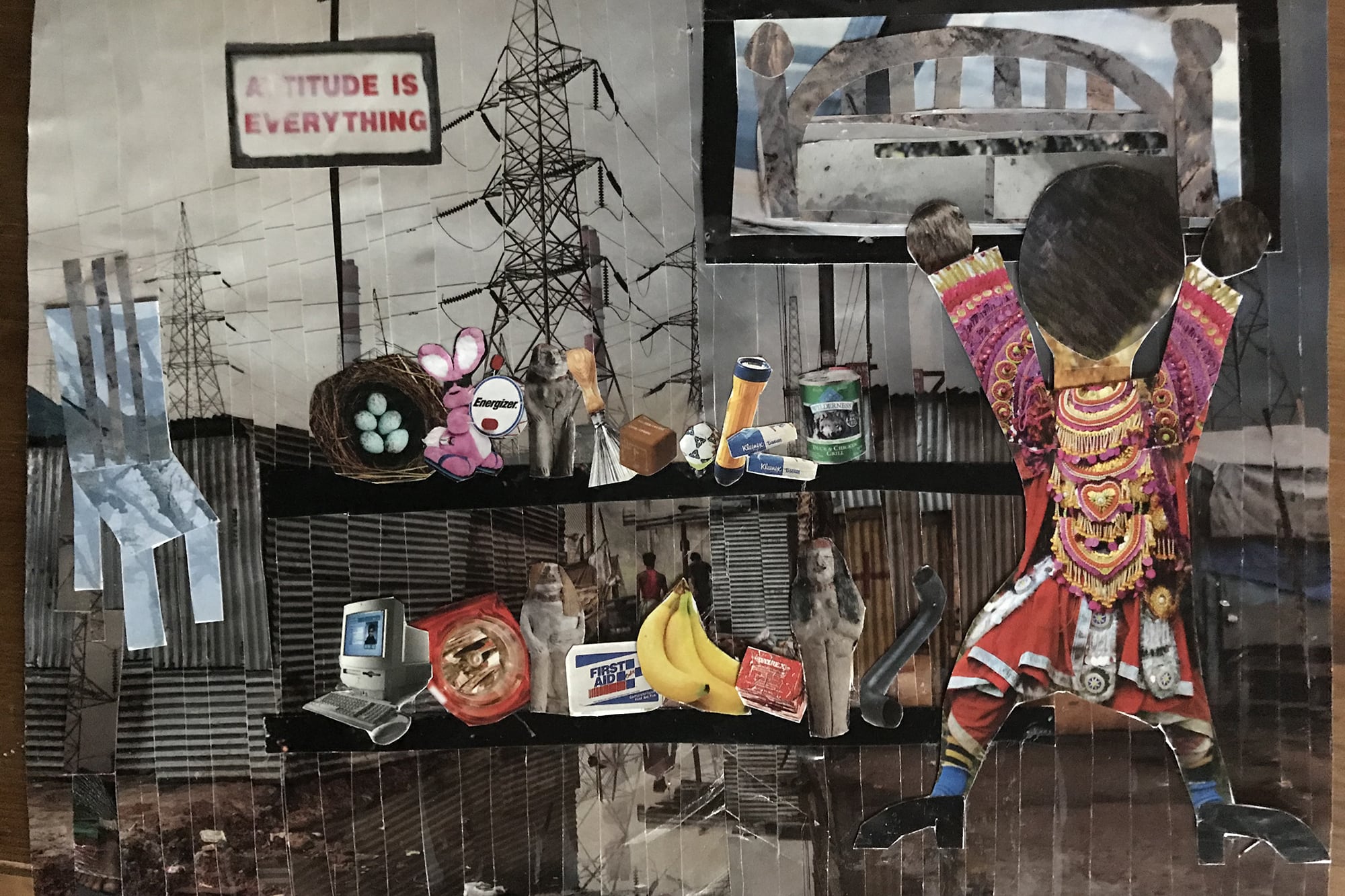 As her 40th birthday approached, Erica Bryant set about making 40 collages featuring 40 dreams. She had started collaging her night visions a few years before, after having a dream that she reached into her body and pulled out her spine as part of the process of becoming a candle. There was no fear or pain in this dream, only certainty that it was time to be a candle. Similar certainty accompanied the goal of making these 40 collages; it was simply time to bring these images from the dream world into the waking one.