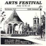 In 1980, a photo by Alan Reddig and a design by Bruce Leonard highlighted the iconic Gazebo at Lunsford Circle. Unusual for its black and white design, the poster announces a 10km race and the popular Fiddlers’ Fair.