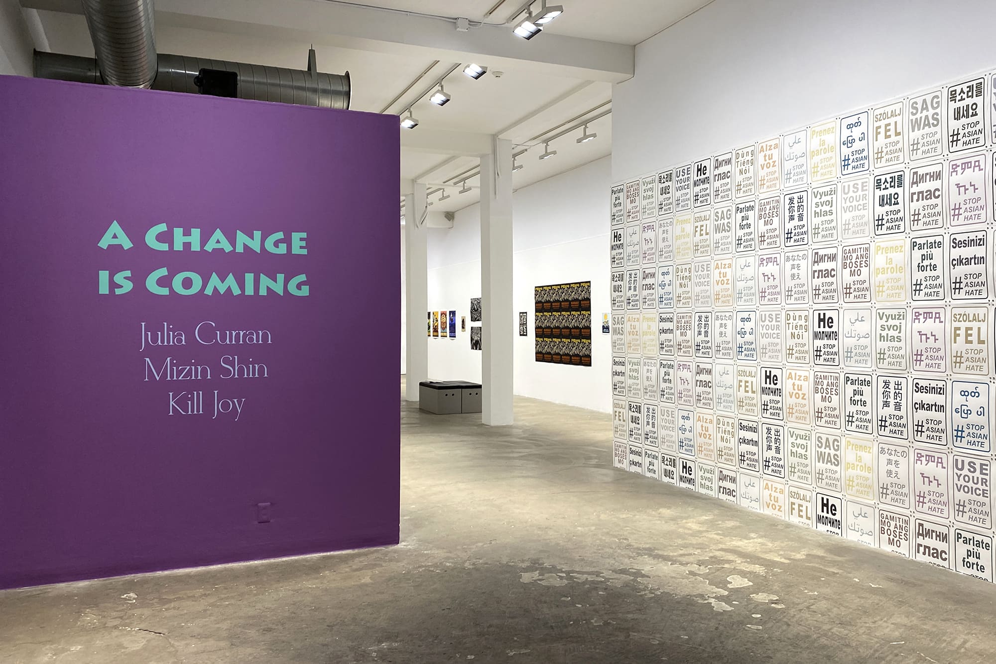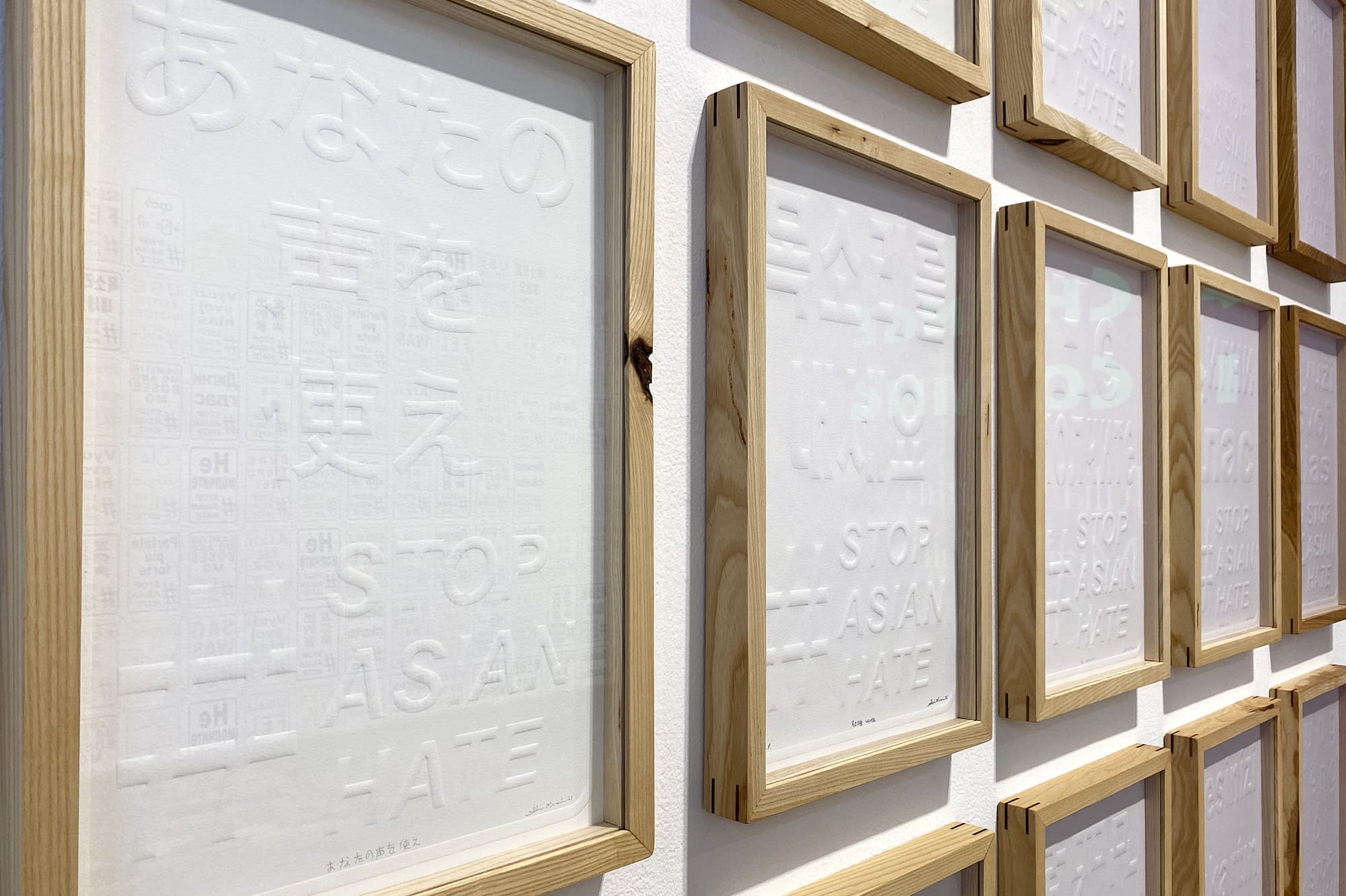 Mizin Shin’s current campaign Use Your Voice #StopAsianHate started in response to rising hate crimes as a way to speak out against racially motivated prejudice and violence. The message is being translated into a variety of languages to engage diverse linguistic communities. There are two versions of the prints being made: (1) Blind embossed prints—these are being traded in exchange for donations to organizations supporting AAPI communities, and (2) Screenprints—produced for free public distribution to raise awareness. Shin’s prints have been traded in exchange for over $2,500 in donations to organizations such as: Stop Asian American Pacific Islander Hate, Advancing Justice Asian Law Caucus, Asian American Leadership Delegation, Asian American Legal Defense and Education Fund, and Vancouver Chinatown Foundation. So far, the prints have been translated into Amharic, Arabic, Burmese, Chinese, English, French, German, Hungarian, Italian, Japanese, Korean, Russian, Serbian, Slovak, Spanish, Tagalog, Tigrinya, Turkish, and Vietnamese languages, with aims to include additional languages in the near future. All prints are translated by volunteers.