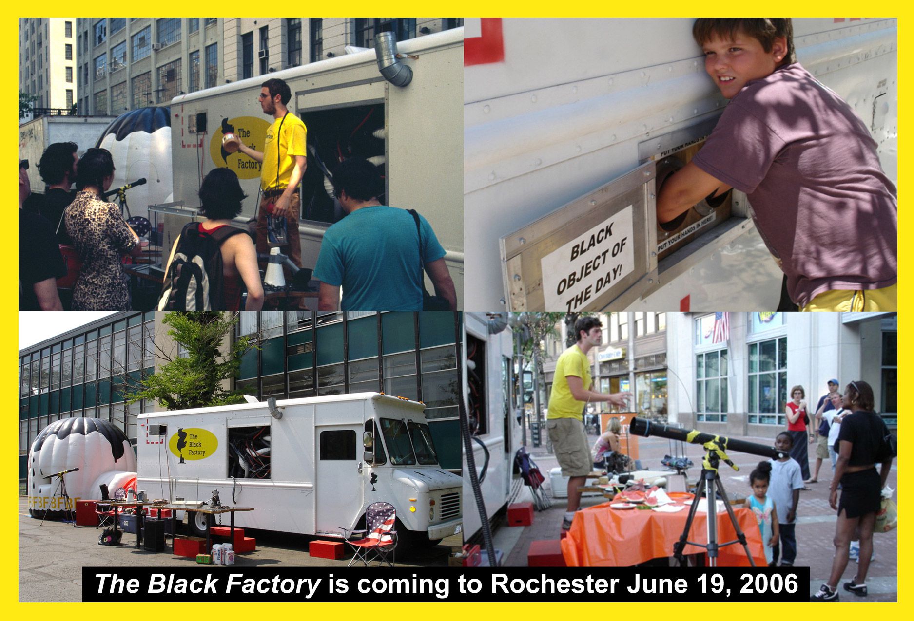 The Black Factory is an interactive performance art installation on wheels, whose mission is to travel the country to start conversations about class, race, and difference.