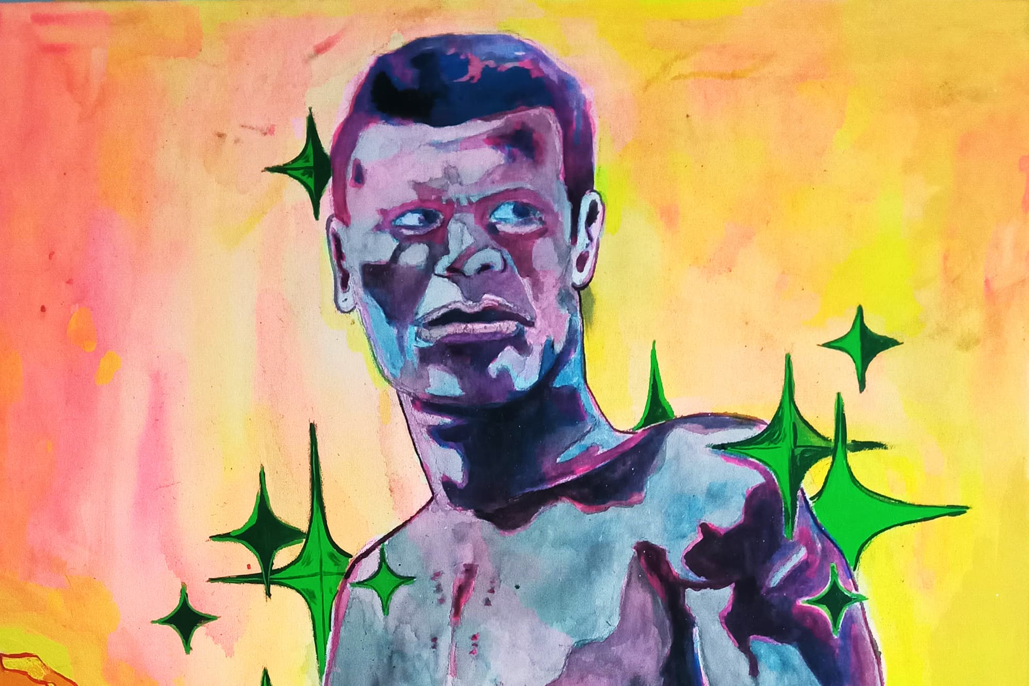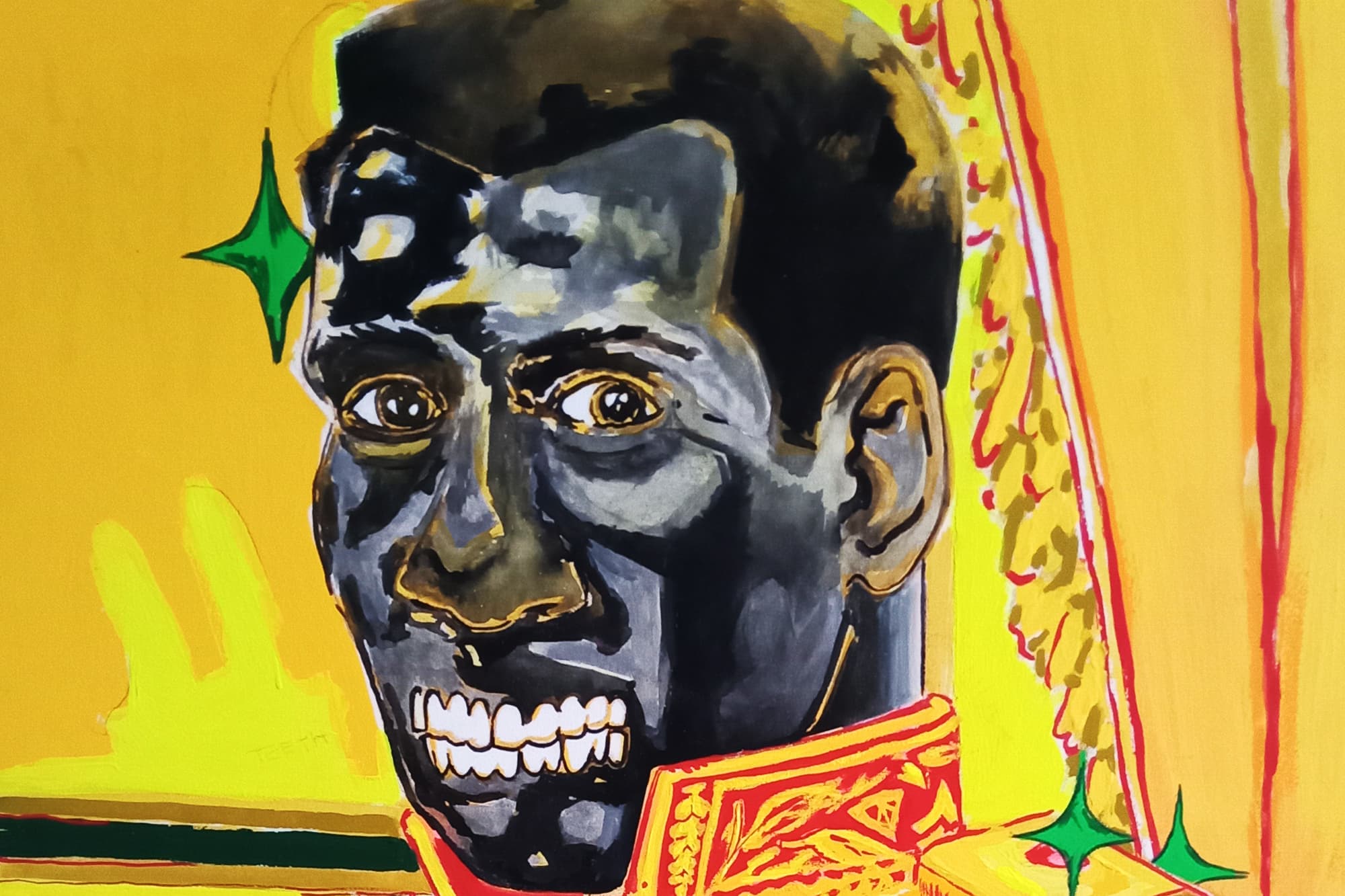 This body of work started after binge watching movies during the pandemic. I came across the movie "Emperor Jones" starring Robeson. The movie thumbnail looked familiar and brought me back to my childhood. Growing up my father kept a framed photo of Robeson in our basement (his study) dressed in costume from this movie! I became completely enthralled by what I had watched and needed to process what I saw. - A.S.
