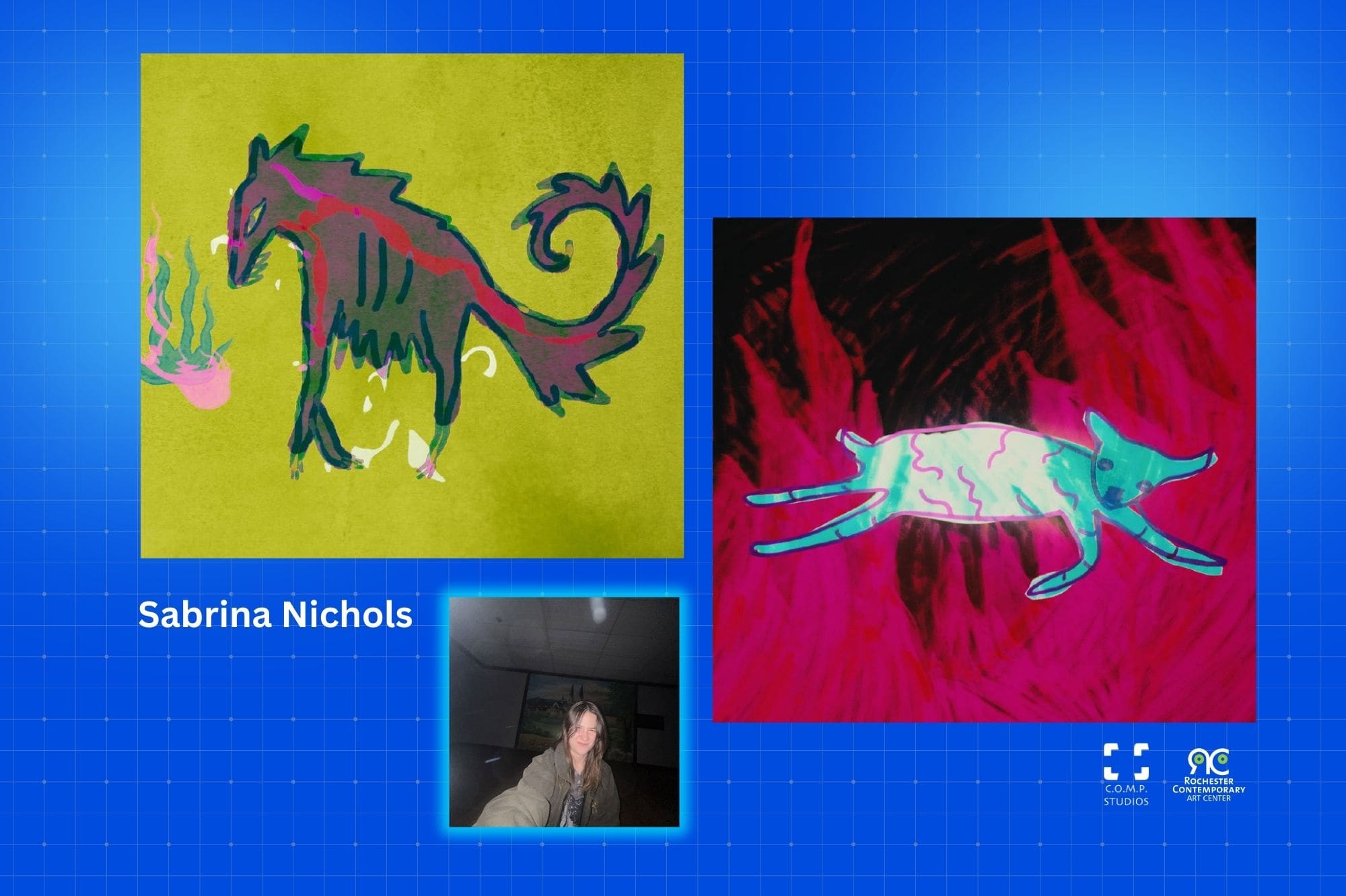 Sabrina is a visual artist based in Rochester, NY. Her practice blends digital media, sculptural form, and offbeat humor to explore the absurd, the uncanny, and the strangely familiar. She earned her BFA in 3D Digital Design from Rochester Institute of Technology in 2018. After graduating, Sabrina interned with [adult swim] in fall 2018, where her interest in surreal and boundary-pushing animation deepened. In 2019, she was an artist-in-residence at UUU Gallery, where she developed immersive works that merged video, performance, and physical installation. Her role as an animator and video editor—aka “video kid”—at Beggars Group in 2020 brought her sensibility to indie music visuals, helping craft content for groundbreaking and already prominent artists. In 2024, she embraced the title of "freelance absurdist monster," a nod to her ever-evolving identity as a creator of strange, playful, and occasionally grotesque visual worlds. Sabrina’s work continues to challenge norms and delight viewers with its irreverent spirit and layered weirdness. @sabrinanichols