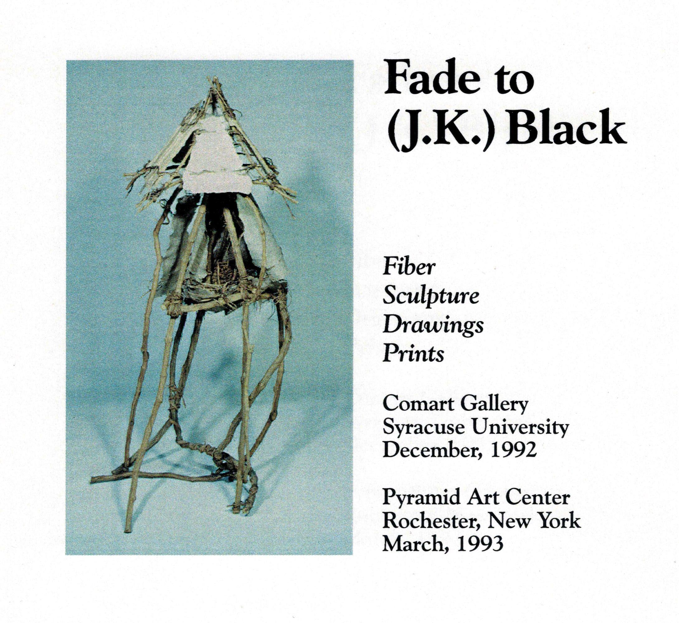 Fade to Black features fiber works, sculptures, drawings, and prints by Jappie King Black.