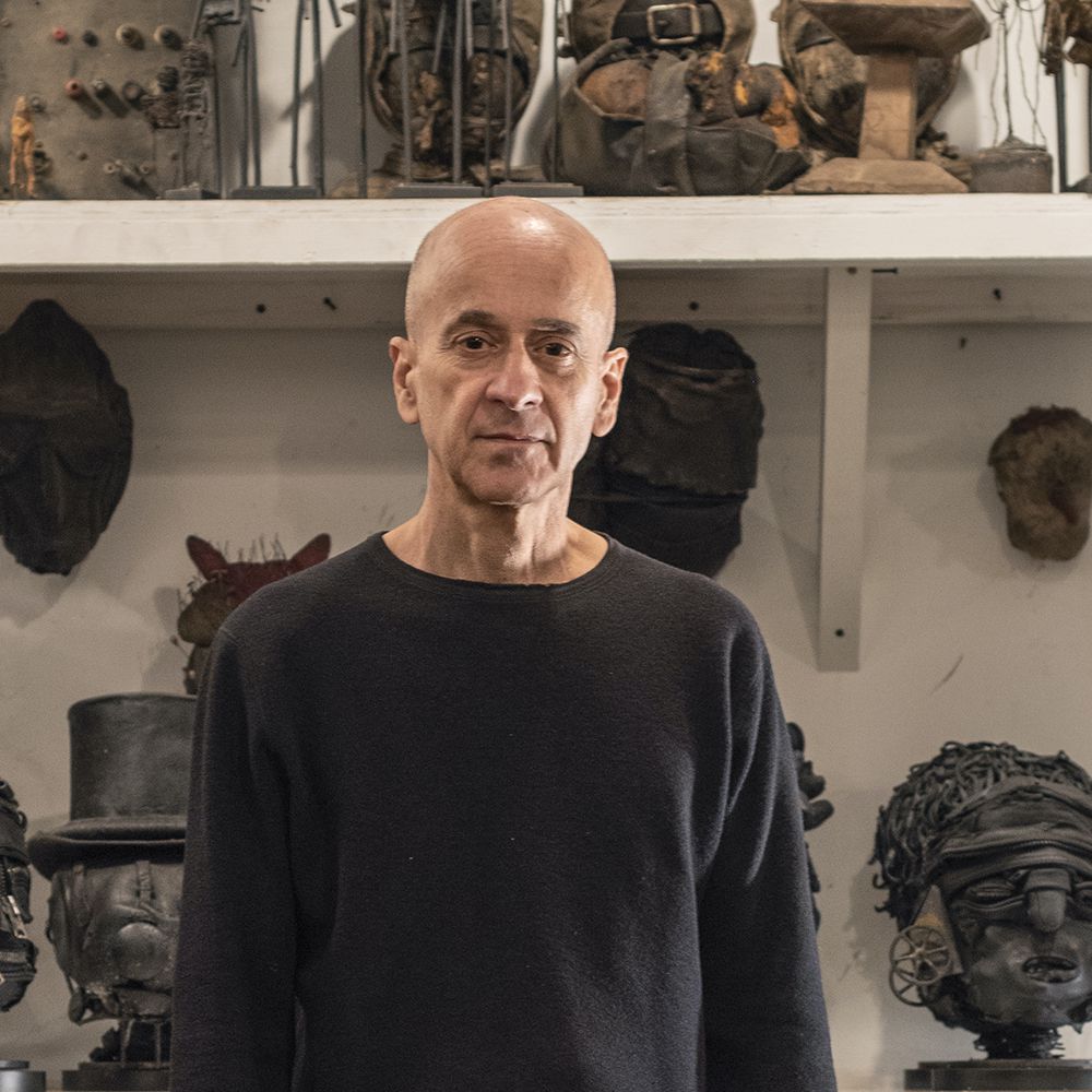 Ronald Mario Gonzalez (b. Binghamton, NY) is a contemporary sculptor and installation artist known for generating innovative bodies of work that explore the intersection between found objects and figuration. At the core of the artist's practice is a complex fusion of time worn and abject materials that blend personal memories with an archelogy of past objects into proliferations of mournful and evocative heads, figures, and assemblages. Since the mid-seventies the artist has created elegiac sculptures and installations that are embodiments of mortality, memory, and survival combining elements of both assemblage and bricolage, remaking dated leftovers at hand in a process of dissolution and renewal. Always working in anthropomorphized serial form, the works feature permutations of materials, scale, color, and texture, giving degraded materials human status and presence through improvisation and craft. Gonzalez’s restless investigation of animating materials has produced a disquieting sculptural universe with expressive distressed elements that serve as an existential grounding for representing the human condition.