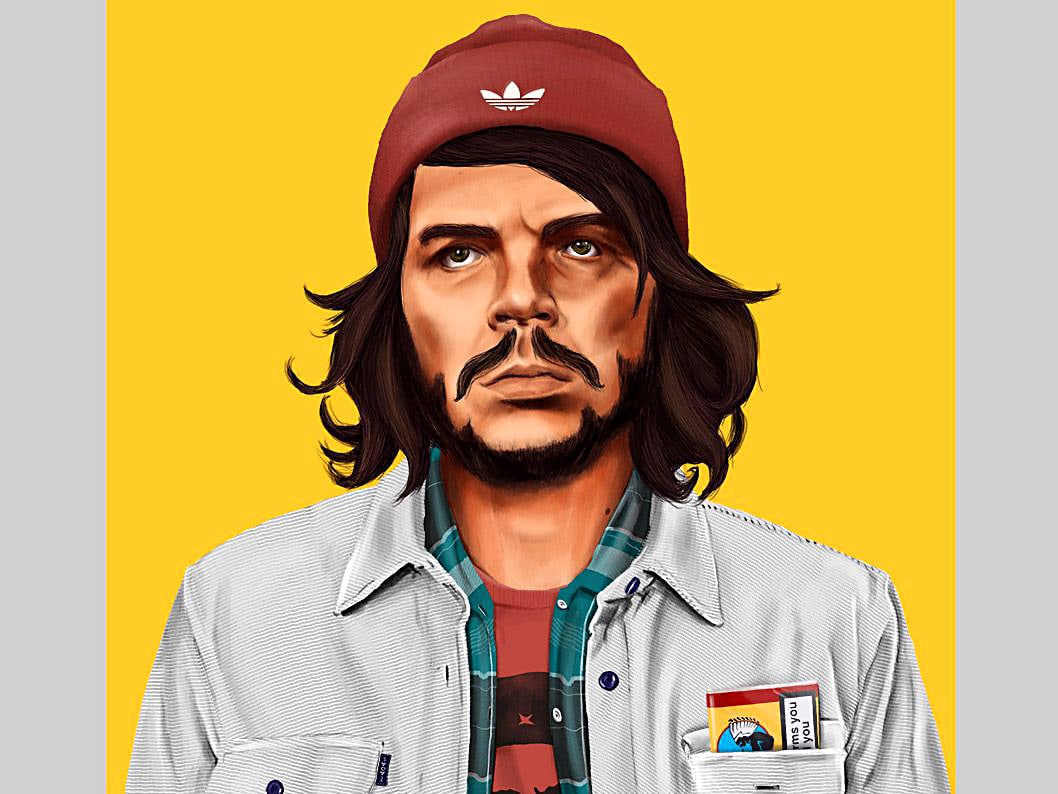 Hipstory is a series of illustrations that recreate iconic figures and place them in a different time and culture, creating a new and altered portrait of them. Amit Shimoni (Jaffa, Israel) describes his process as "a game of 'Ping-Pong' with reality."