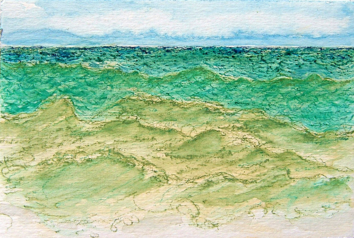 Little Windows on Big Water is an exhibition of work by Kathryn Gaspar Going. Her paintings demonstrate an acute awareness of the subtle differences between bodies of water such as the Atlantic Ocean and the Gulf of Mexico.