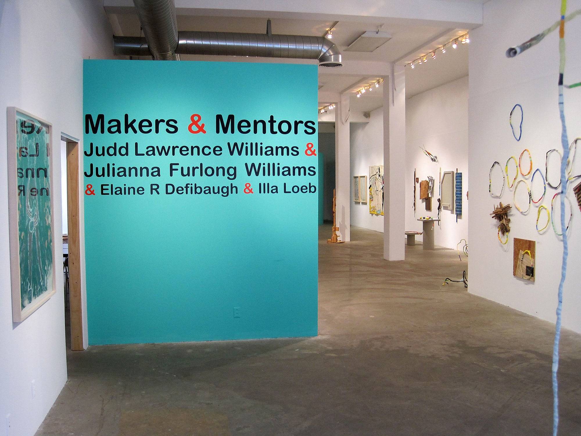 Makers & Mentors 2010 presents new sculptures, paintings, and drawings by influential artists and educators Judd Lawrence Williams and Julianna Furlong Williams, along with the work of their former students, Elaine Defibaugh and Illa Loeb. Co-Curated by Nancy Kelly and Bleu Cease.
