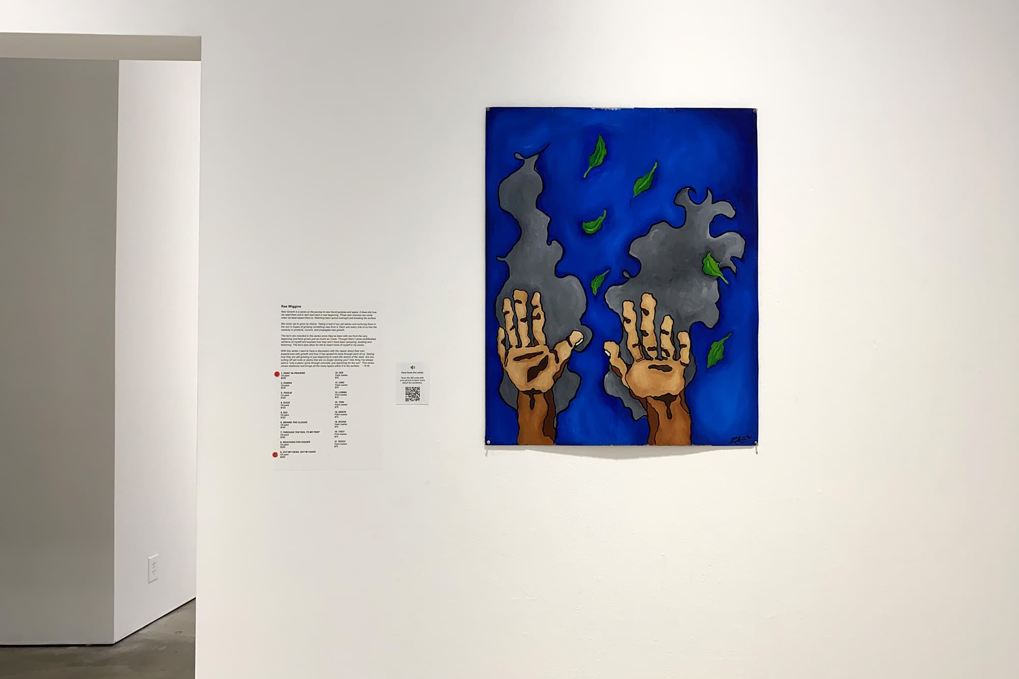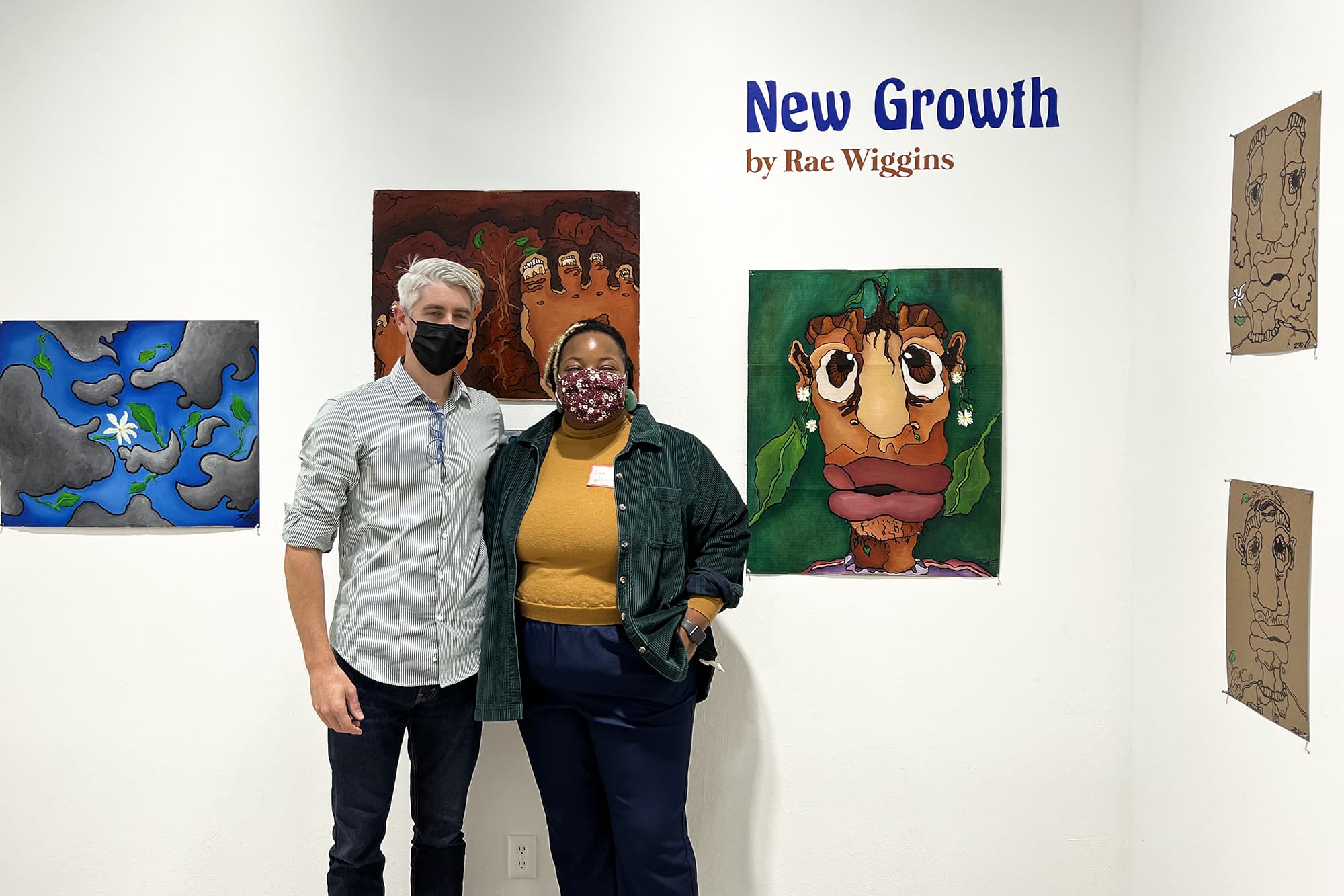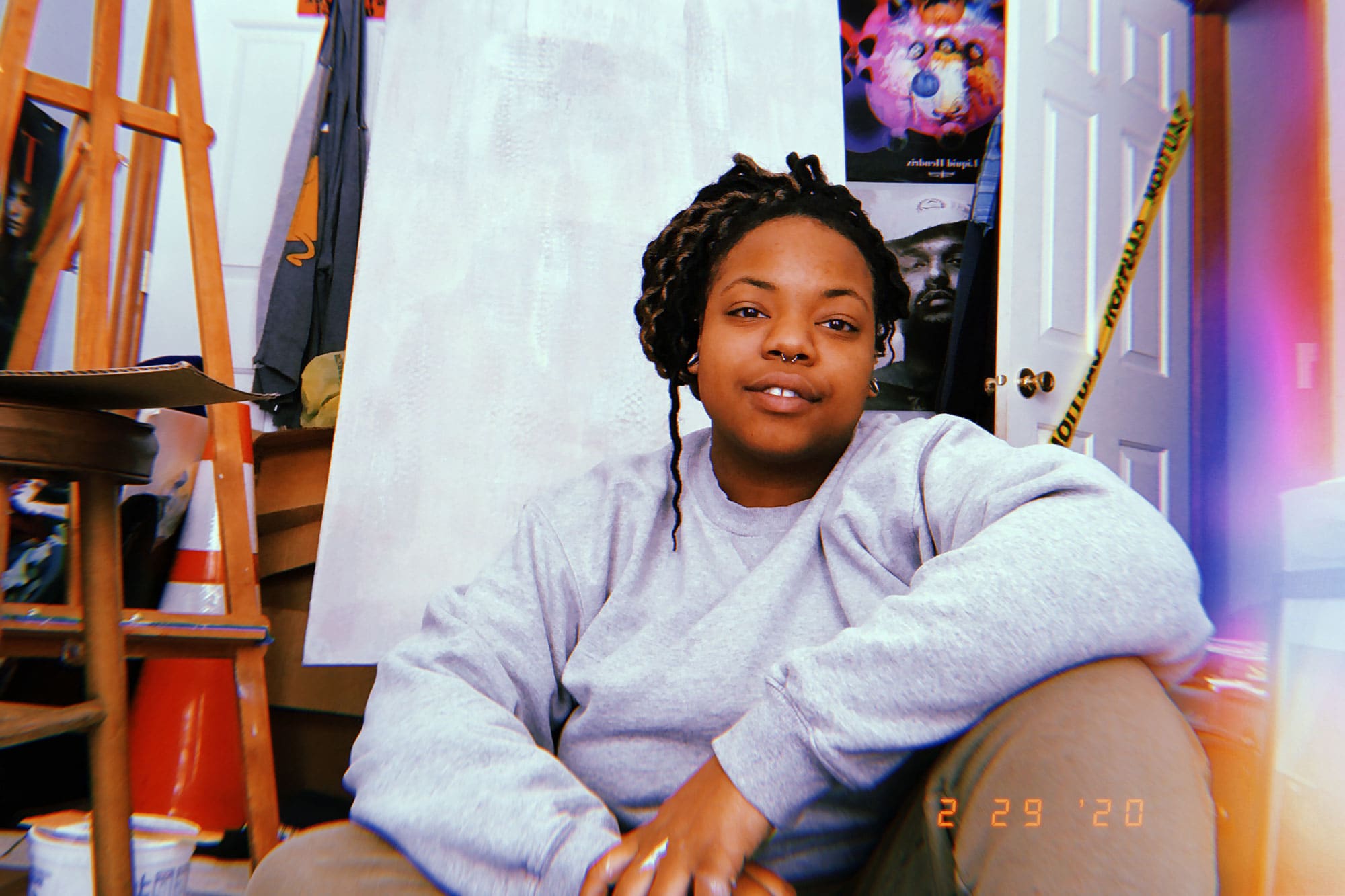 Rae Wiggins was born and raised out of the mud of Sodus, NY. Their art dives into their experiences growing up black, queer and trans in a conservative small town. Rae channels that unrooted emotion into their works. Using a raw and rigid hand style Rae contains the untouched material of what they felt/feel while their oil paint shows the tone and color appeal towards what the story is portraying.