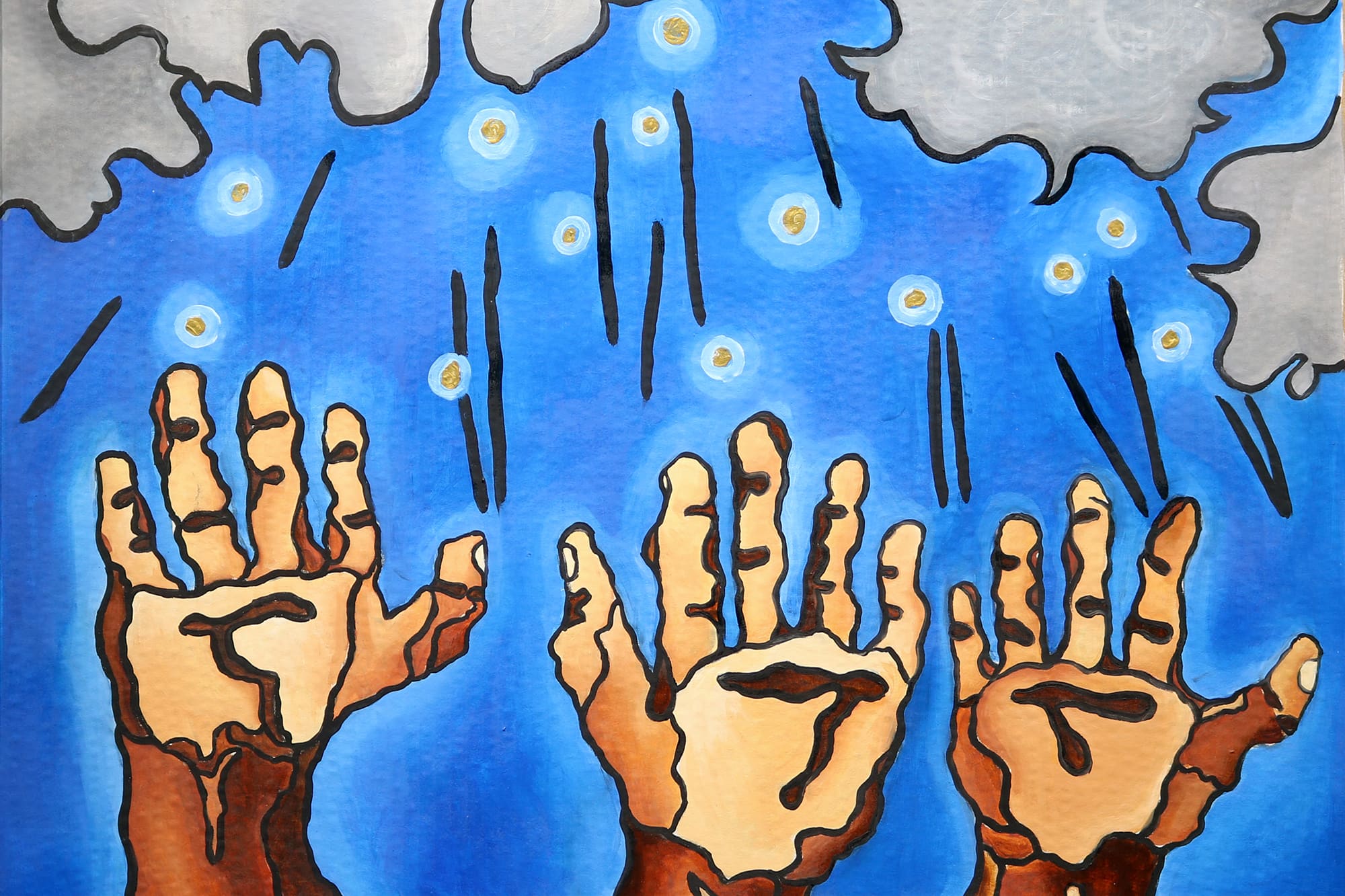 In Rae’s work you see their background skills in graphic art and graffiti come through. Finding inspiration through personal life experiences, Rae tells the viewer a story in their works presenting as a visual scripture. Wanting them to dig further than the surface and allowing the story to take them on a journey.