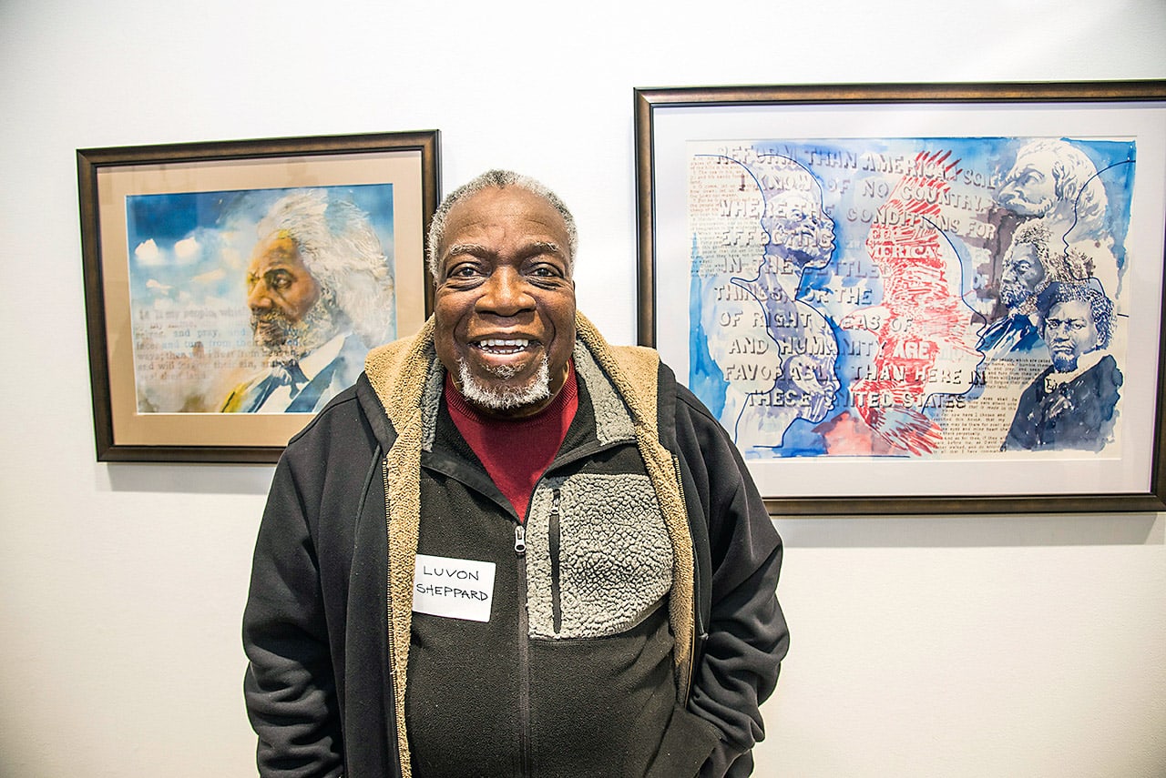 Luvon Sheppard (Rochester, NY) received his bachelor’s and master’s degrees from the Rochester Institute of Technology, where he is a full professor in the School of Art and Design. Luvon has also taught at SUNY Brockport and Geneseo Universities. Sheppard’s paintings reflect his involvement in Rochester community life. He is known for his watercolor street scenes and portraits of local African-American heroes, including abolitionist Frederick Douglass, choreographer and dancer Garth Fagan, and community activist Mildred Johnson. His work is in the permanent collections of the Memorial Art Gallery, the City of Rochester, the Museum of Fine Arts in Boston, the University of Seoul, South Korea, the Henrietta School District, the Rochester Institute of Technology, the Rochester Savings Bank, Garth Fagan Dance, and many other institutions. Sheppard has always played an active leadership role in the Rochester arts community. In 1970 he became the Memorial Art Gallery’s first Neighborhood Affairs Coordinator. He was also instrumental in the creation of the All Of Us Workshop, a groundbreaking organization created to provide community art classes. Luvon has received many awards, has lectured throughout the Greater Rochester Area, and serves on several committees and boards.
