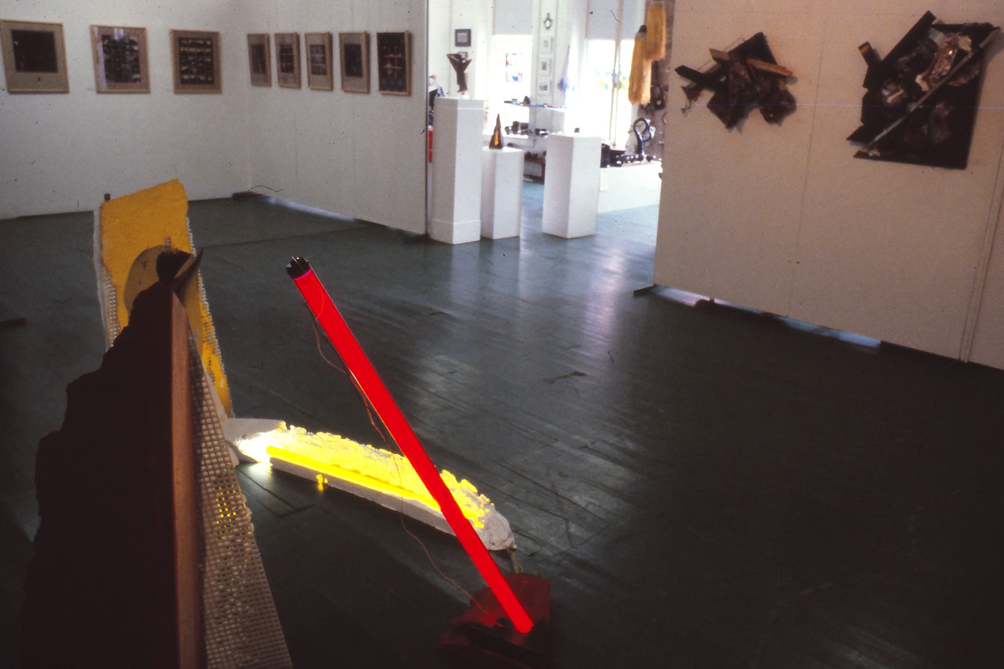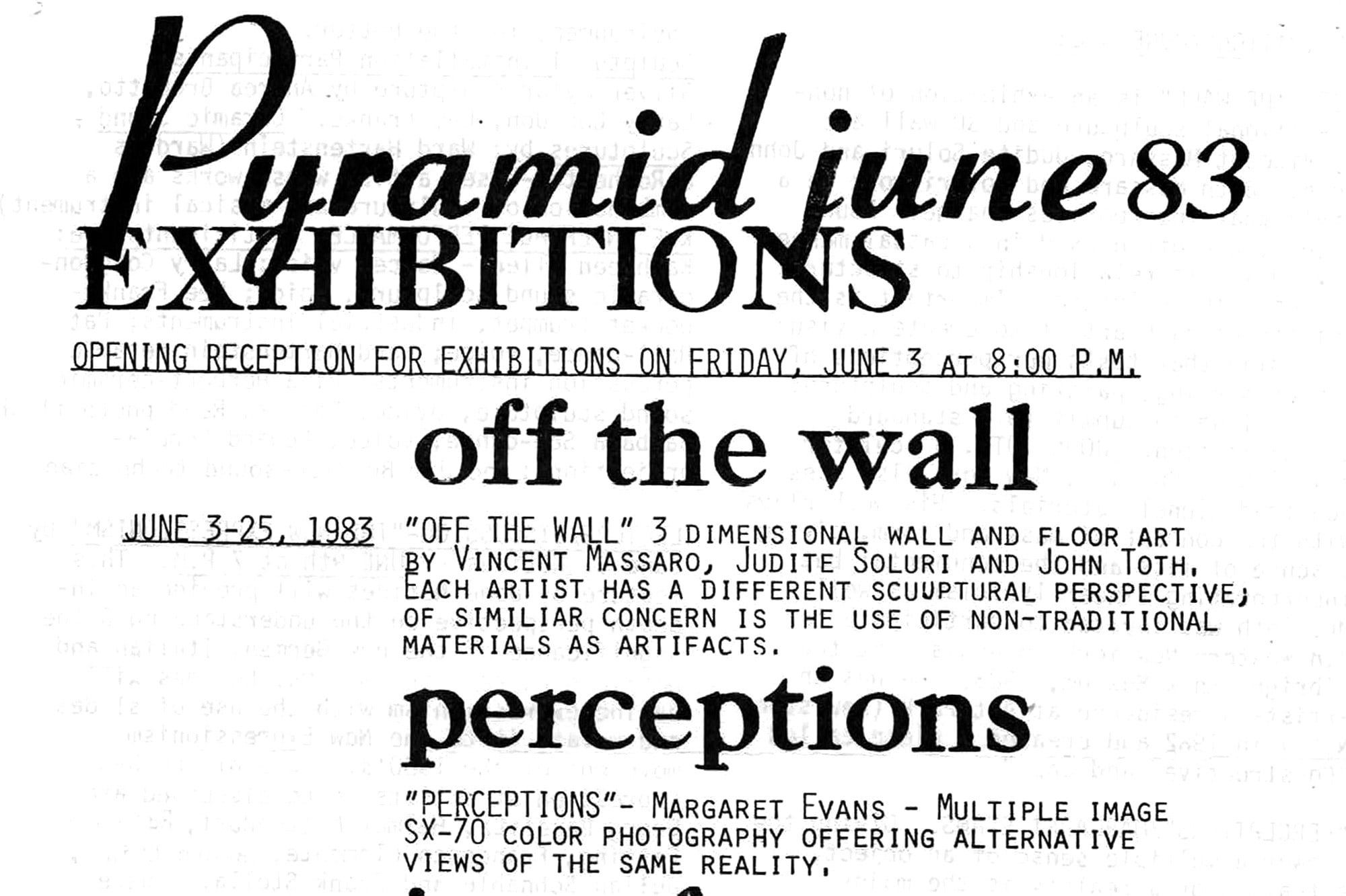 Off the Wall is a exhibition of three-dimensional paintings and sculpture. The three artists, John Toth, Vincent Massaro, and Judith Santos, share their use of nontraditional materials, such as found objects, cardboard, and styrofoam.