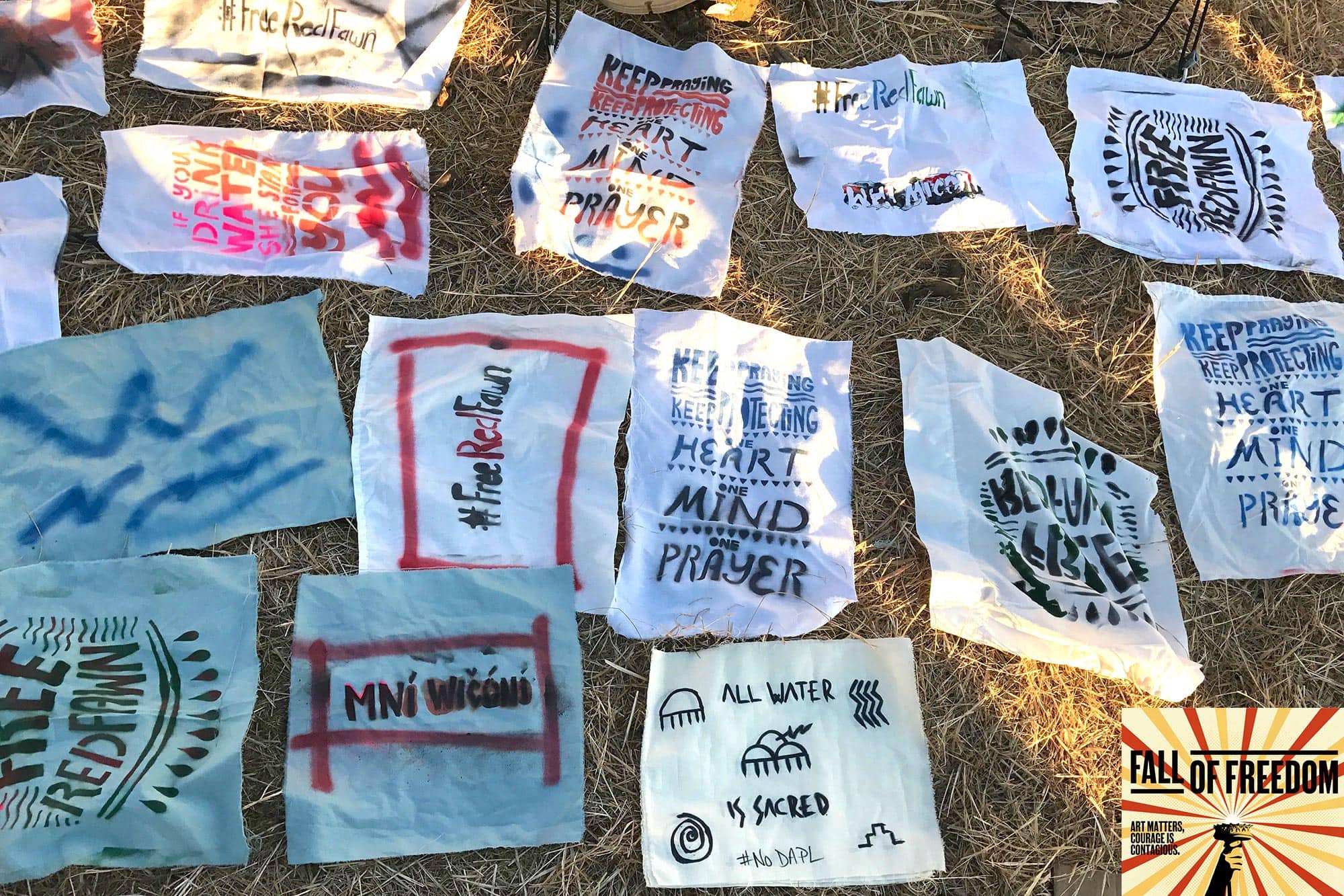 Photo was taken at the Oceti Sakowin water protector camp during the No DAPL movement in 2016 and showcases protest patches that are similar to what will be made at Patch up/Catch up. Credit: LaurenAmber