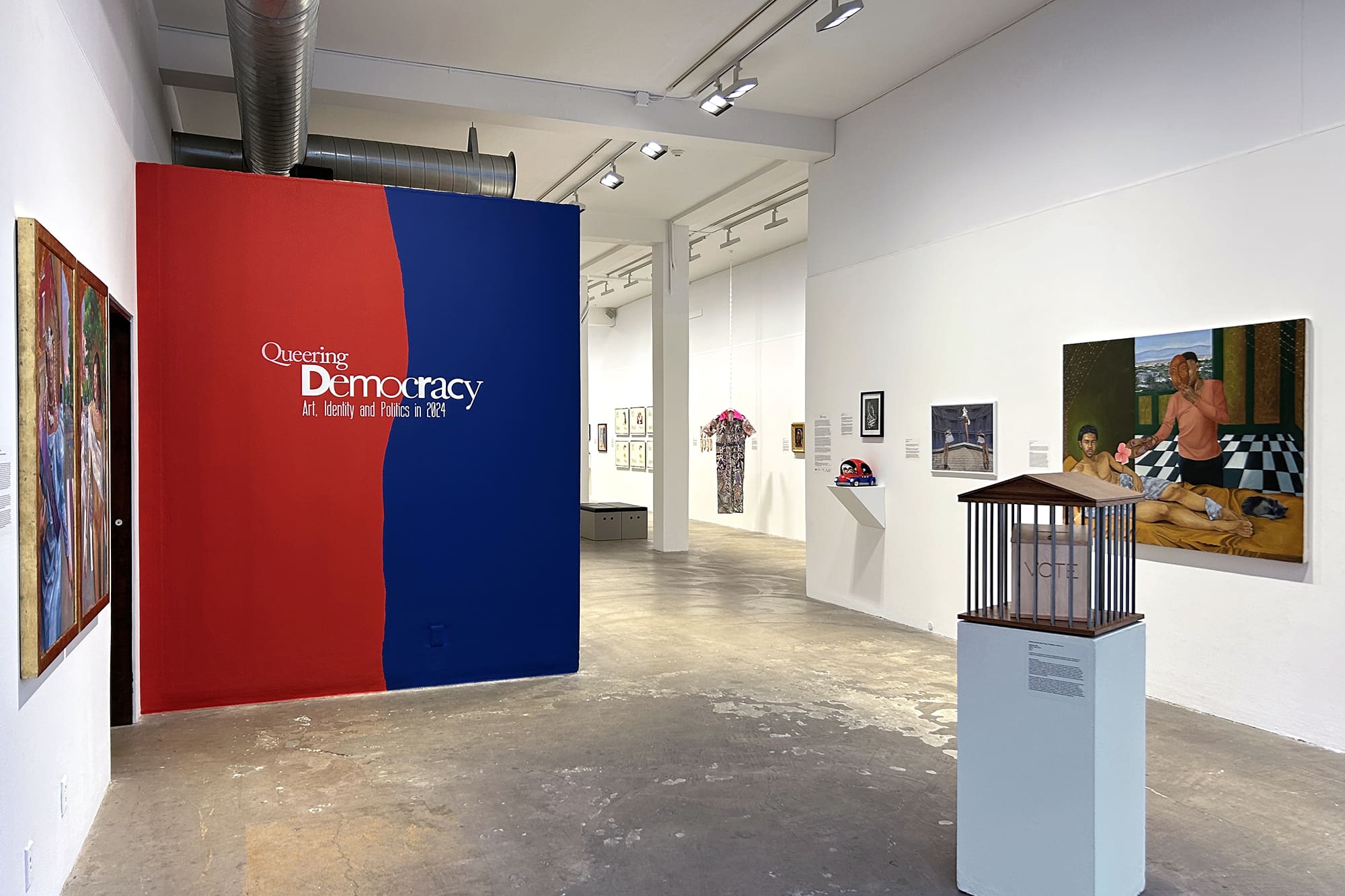Presented in partnership with ImageOut Art this national juried exhibition is a reflection of our current moment, and is a poignant response to the alarming rise of anti-LGBTQIA+ legislation. Queering Democracy showcases a wide range of experiences, emotions, and thoughts on the evolving struggle for LGBTQIA+ rights and representation and includes over 50 artworks from 15 US States by the following artists: