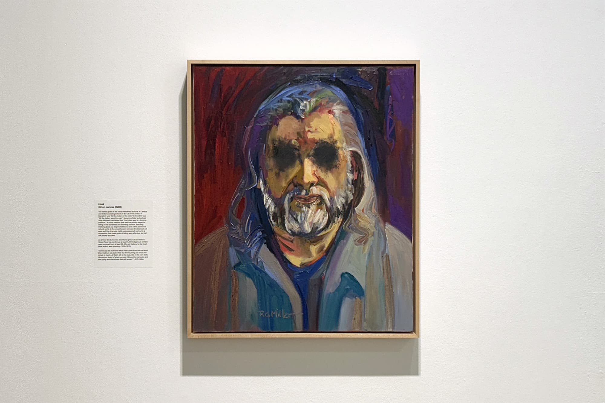 R. G. Miller is a member of the Haudenosaunee Six Nations of Grand River, and was born in a strawberry patch in Grand River Territory in 1950. He was almost three years old when he was taken away to the Mohawk Institute. He was in for 11 years of terror at the hands of the Anglican priests and their staff. He ran away multiple times but was always brought back and punished. Another technique of escape he developed in the Mushole was drawing, starting with copying figures in the occasional comic books that came his way. His ability was noticed enough that he was able to take an art class in an actual school nearby. This provided a temporary reprieve from the normalized abuse that awaited him when returned to the Mush Hole. By the time he got out (he was 14), the wounds in his soul ran deep. When he was 19, he attempted suicide by jumping off a building. Yet that same year (1969) he began formal art training at the Ontario College of Art (OCA – today known as OCAD University), where he excelled in painting, drawing, and printmaking. After six years training and then teaching at OCA, he continued his artistic development at the University of Toronto. During those Toronto years he often painted with and learned from the Ojibwa artist Arthur Shilling (who was also a Mohawk Institute Survivor). By the 1980s he became an independent artist and remains so to the present day, known for his neo-expressionist approach to portraiture and landscapes. His work is found in multiple collections in Canada and the United Kingdom. At the same time he has continually struggled with the afterlife of residential school, and repeatedly self-destructed in his personal and social life. It was not until 40 years after getting out of the Mush Hole that he was ready to create art about his experience. What he expresses in this work resonates with the experiences of tens of thousands of other Survivors. His healing journey has not ended. He is still surviving.