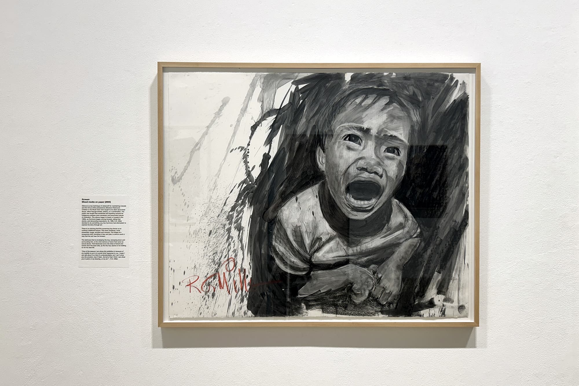 Today the Indian residential school system is publicly acknowledged by Canada as part of a long settler genocide against Indigenous Peoples. Since 2010 Canada started down the path of national truth and reconciliation. Testimonials, oral histories, and artworks by living survivors like R.G. Miller are an integral part of this process. By comparison, the United States has yet to walk this path, even though it originated the idea of solving the “Indian problem” by removing children from their families, and operated more than double the number of institutions in Canada.