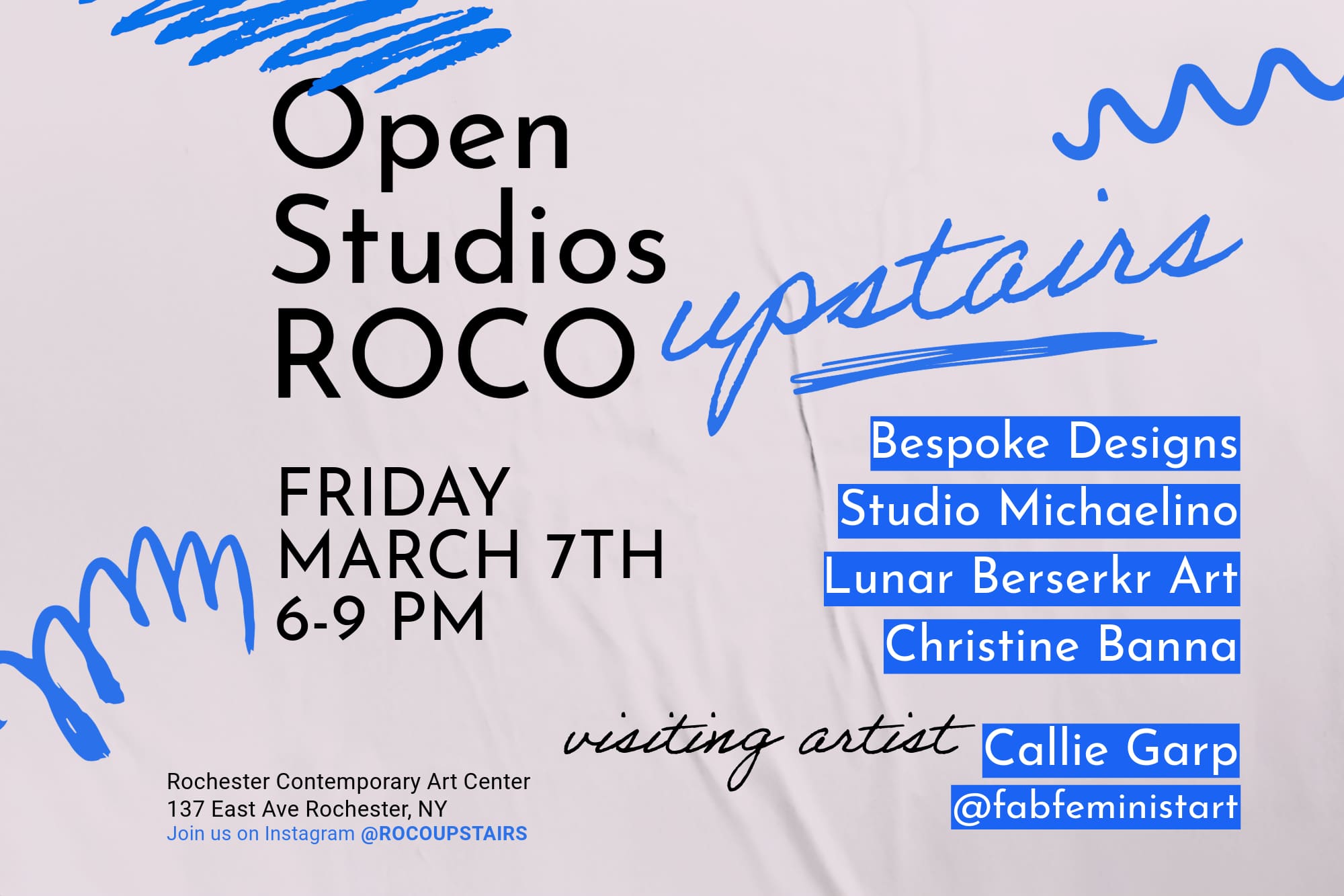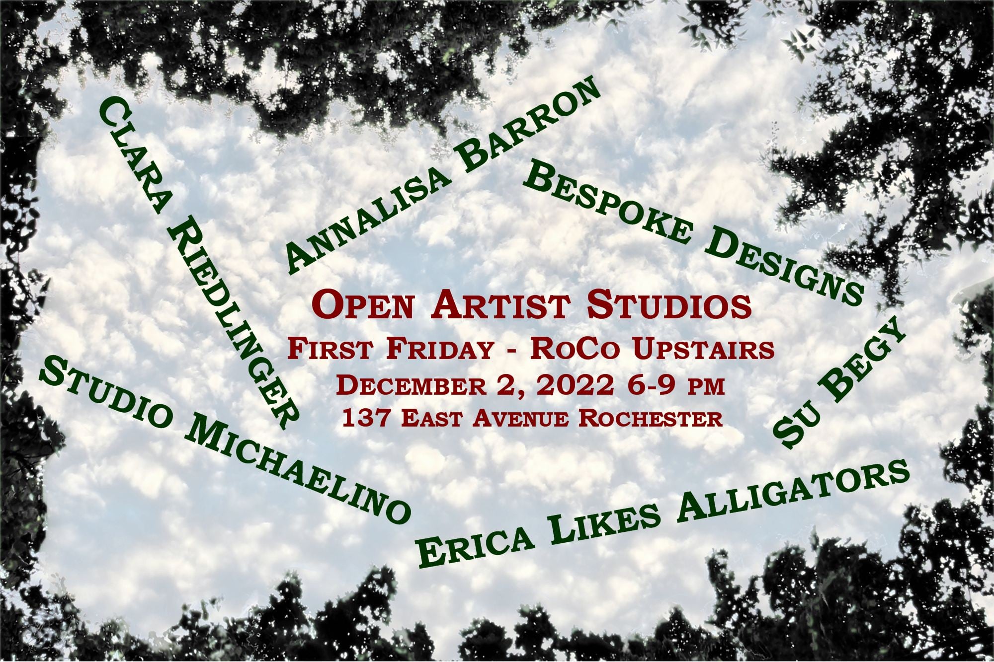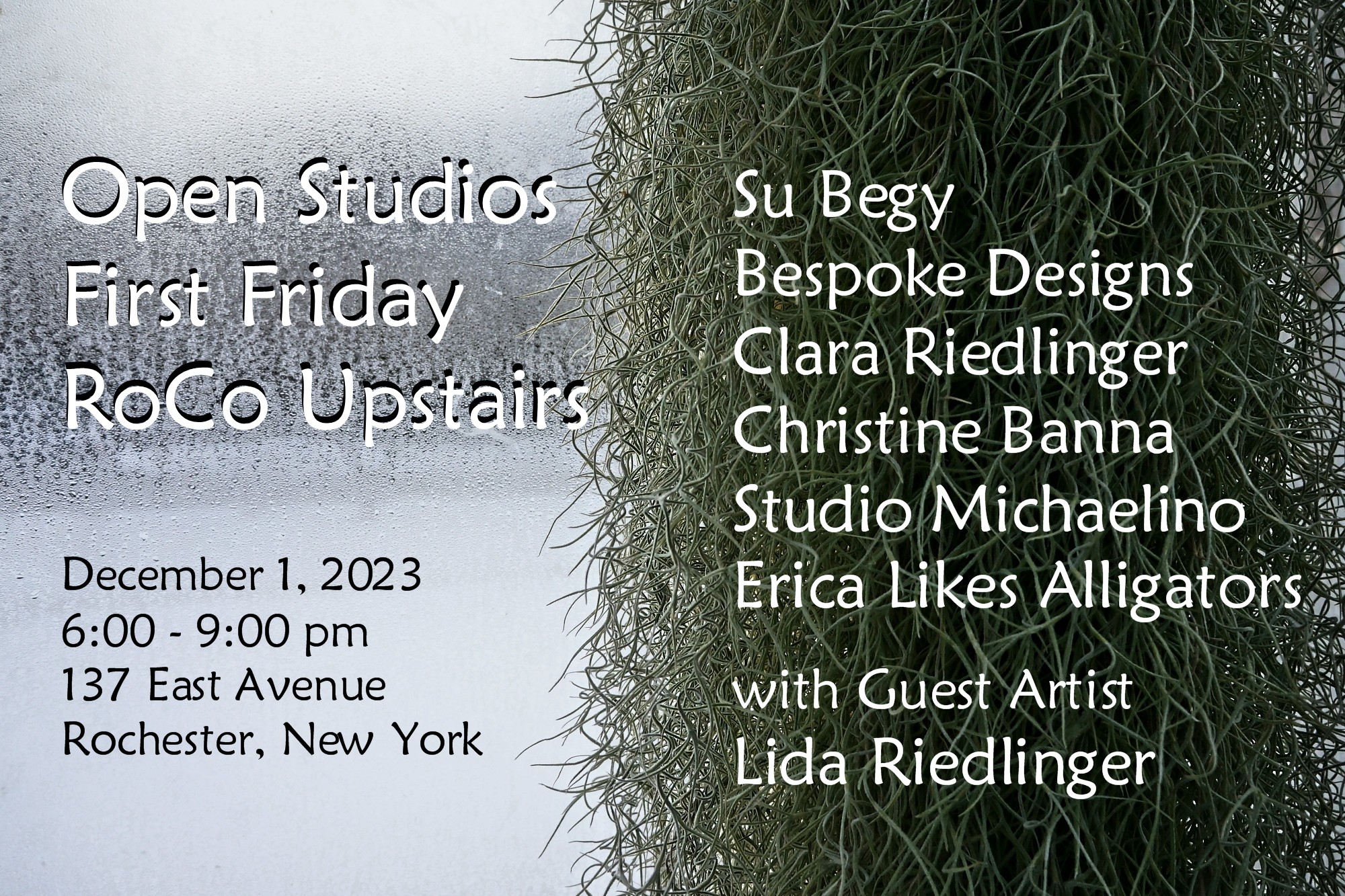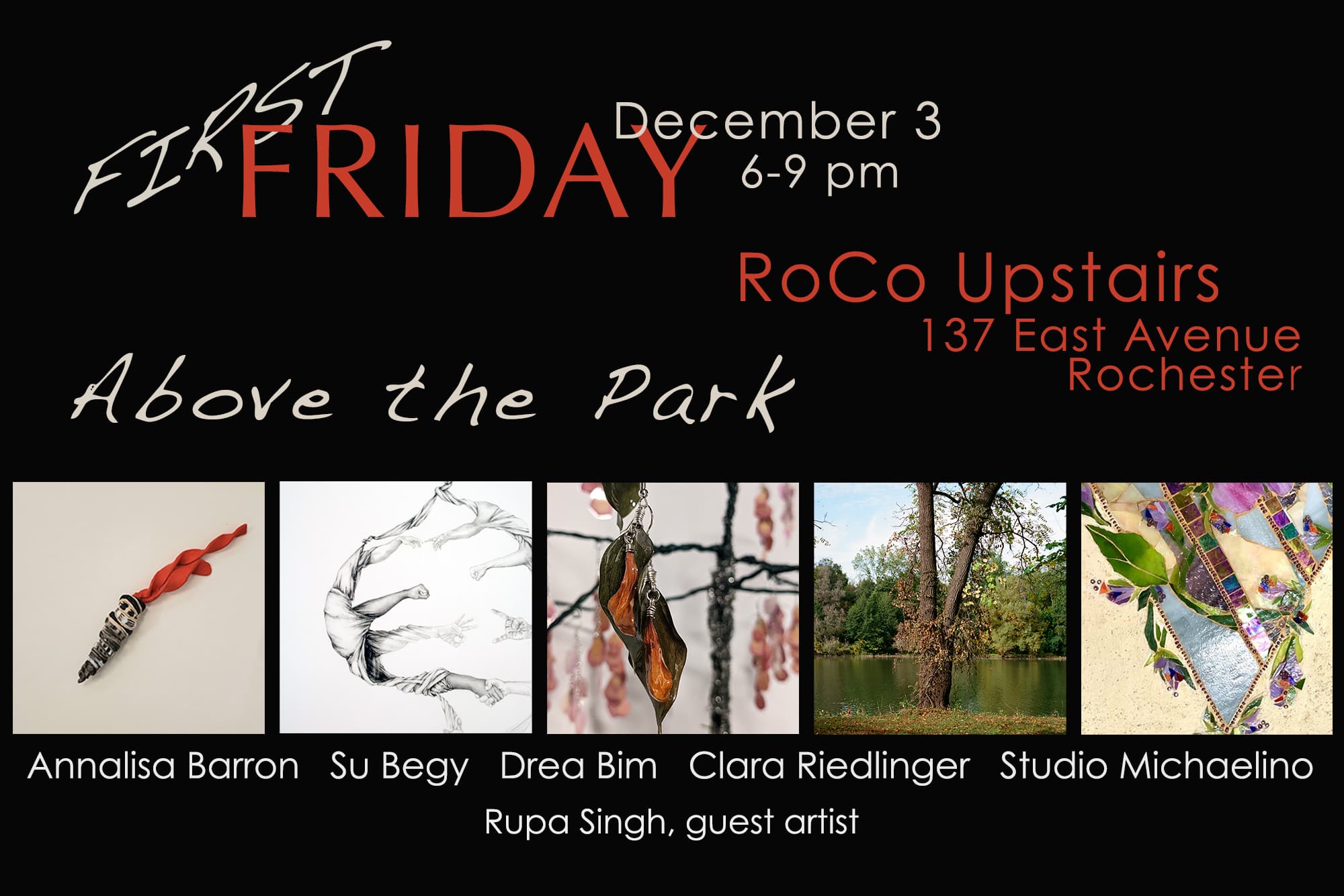 Additional Open Hours for RoCo Upstairs and COMP Studios: Saturday, December 5, 12-5pm; Saturday, December 13, 12-5pm