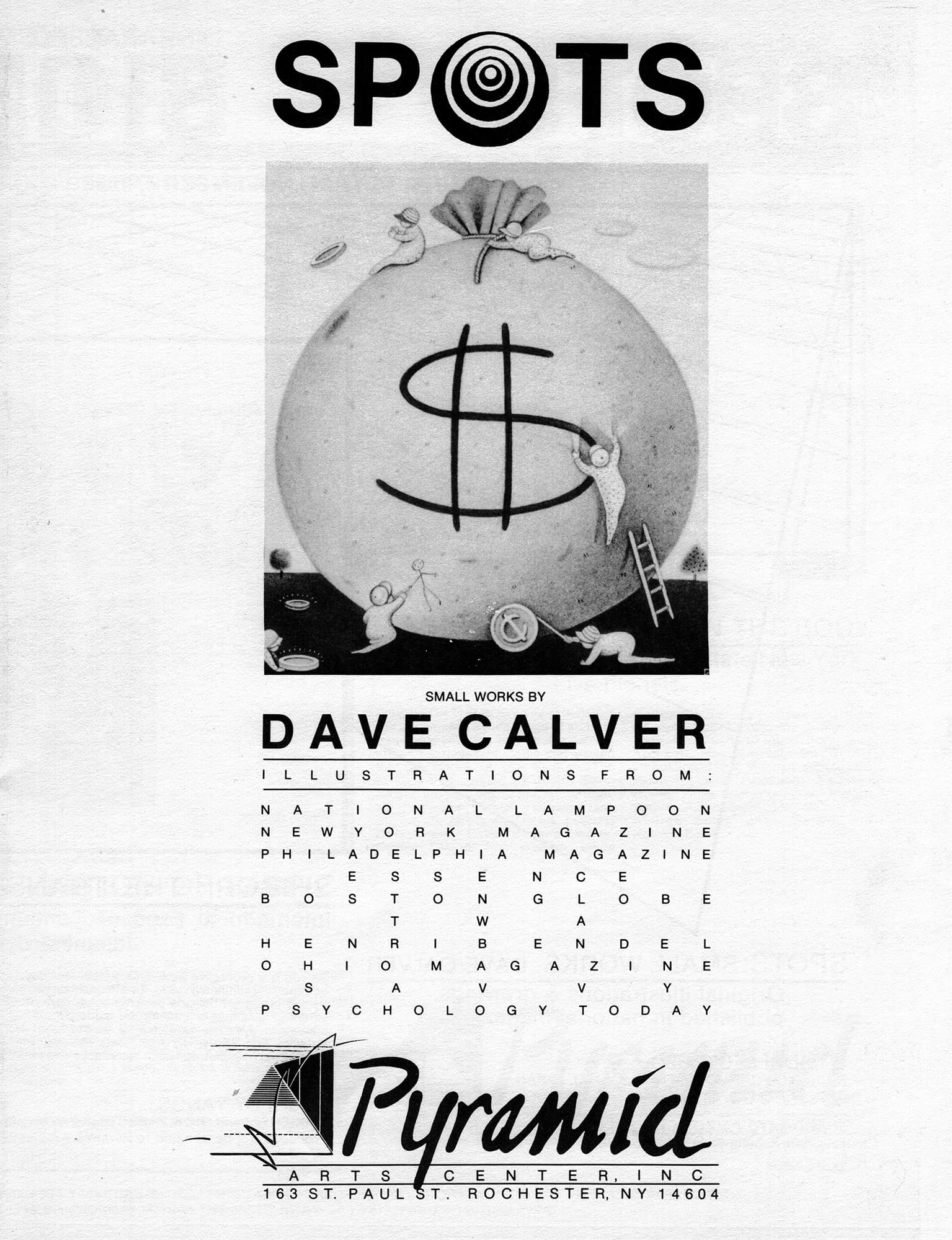 Spots: Drawings by Dave Calver features 20 drawings originally created by the artist for national magazines and newspapers.