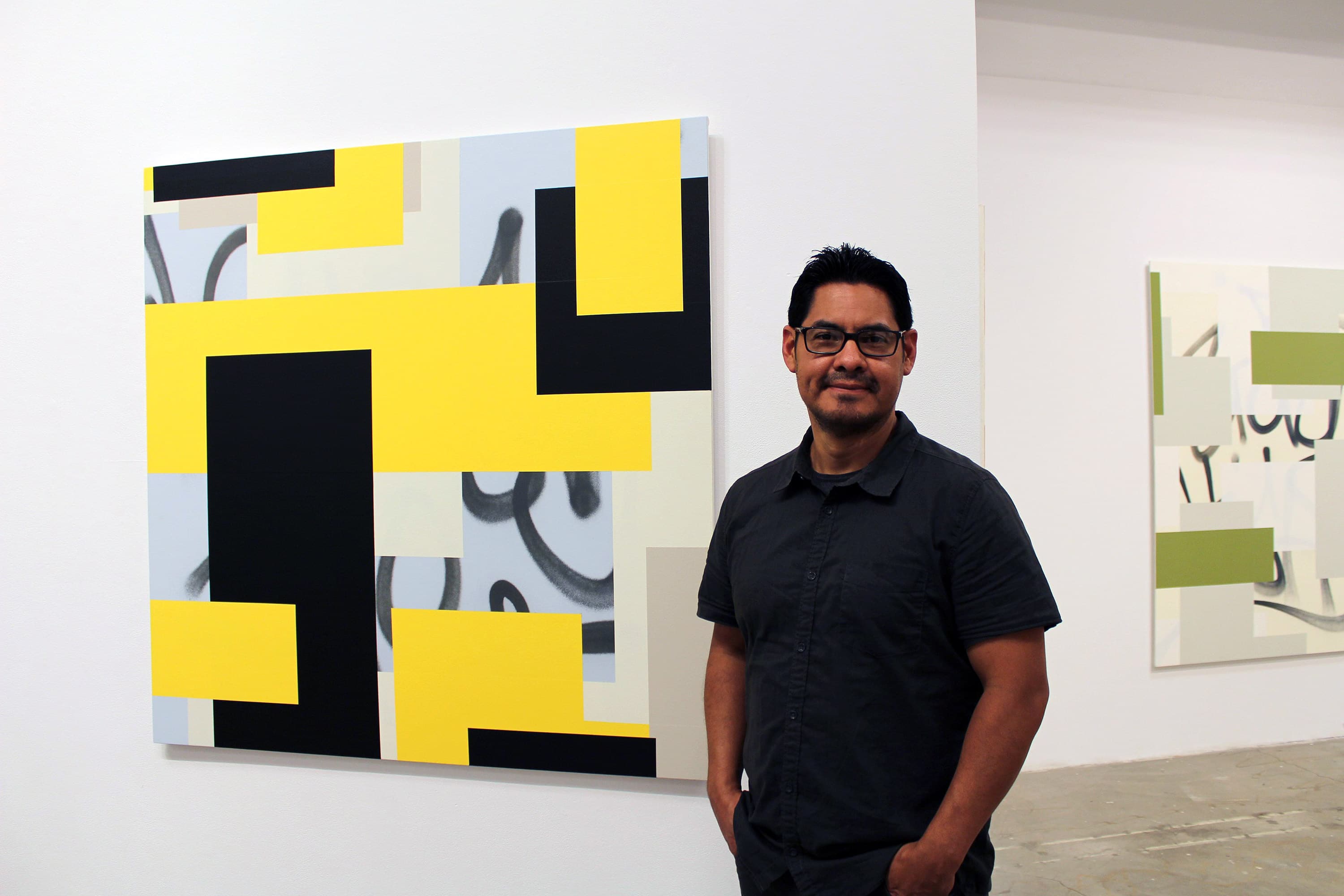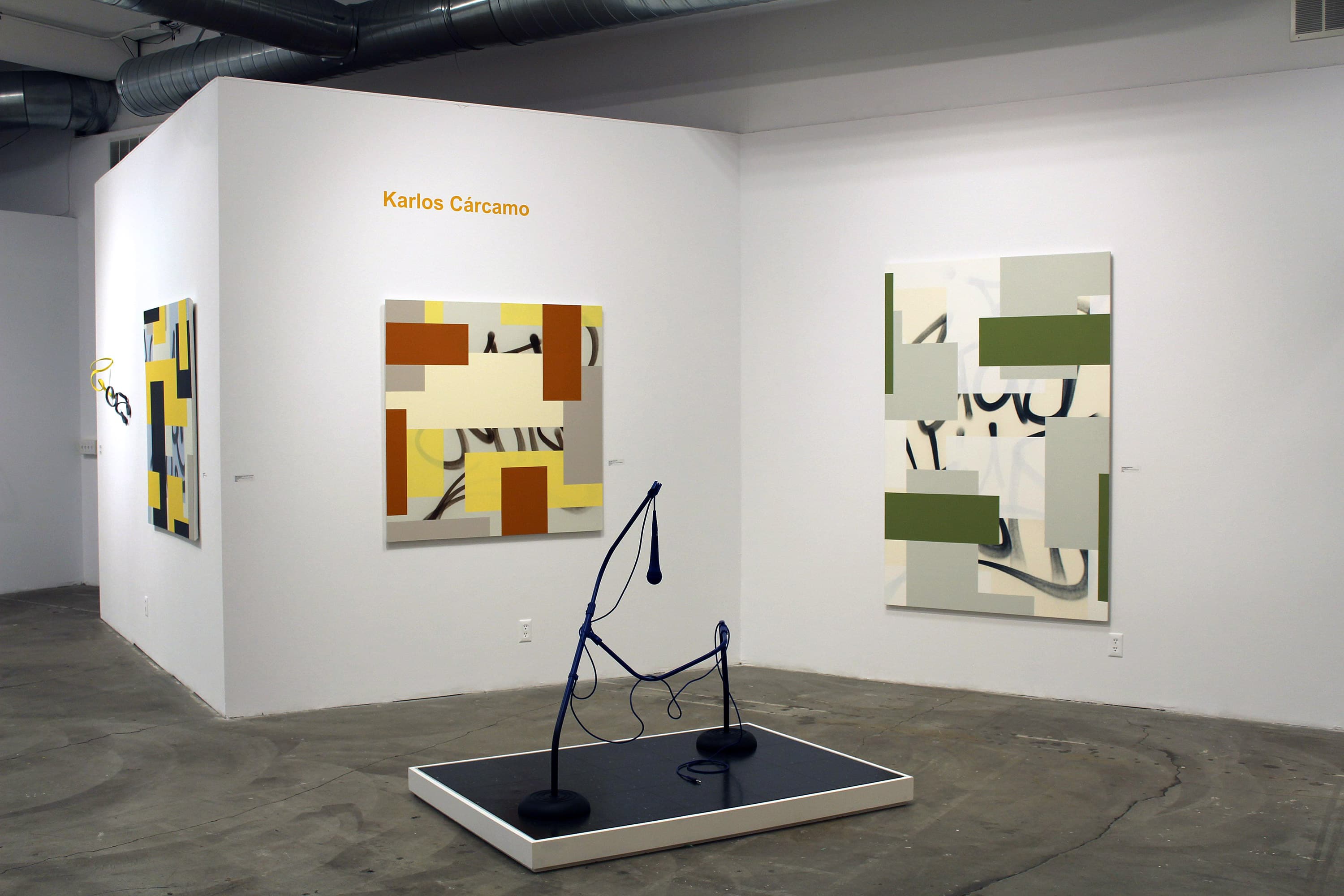 Karlos Cárcamo (Beacon, NY) is a painter and sculptor who is informed by his interest in history, urban culture, and Modernist Abstraction. His multi-media work incorporates high and low cultural references while exploring the social function and codified language found within various aspects of urban culture. He is also interested in urban culture’s influence on popular culture. Cárcamo's artwork, such as his Hard Edge Paintings (6 of which are featured in Street-ish), which mash-up graffiti tags, color fields, and paint overs, aims to understand the urban environment’s unique vocabulary through Modernism’s own art historical and ideological lenses. Cárcamo has been included in many group exhibitions and recent solo exhibitions at Hionas Gallery and Dean Project.