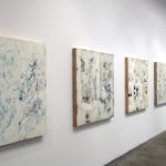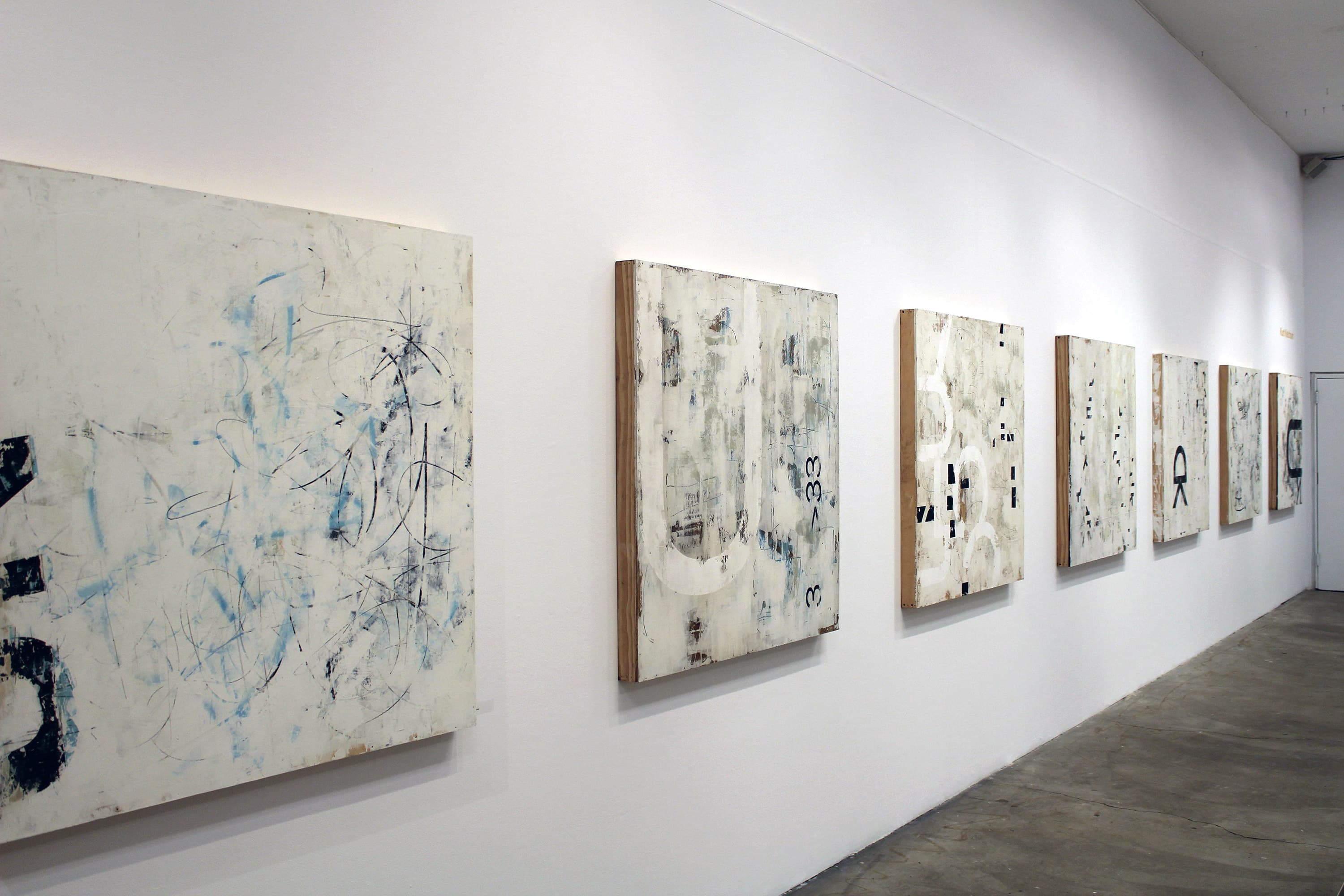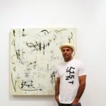 Kurt Ketchum (Rochester, NY) brings together elements of street art, Abstract Expressionism, stencil art, and graphic design in his paintings, graphics, and sculpture. Ketchum considers himself both influenced by and an active observer of street aesthetics, architectural decay, and skateboard culture. His visual language contains textured elements of high and low culture, often including slivers of numbers and type arranged in idiosyncratic and careful positions. Pieces of Ketchum’s paintings can just as easily allude to a sport team’s logo, as a loose numeric scribble, or an aging street sign with paint overs, all the results of the artist’s pursuit of his own universal vocabulary.