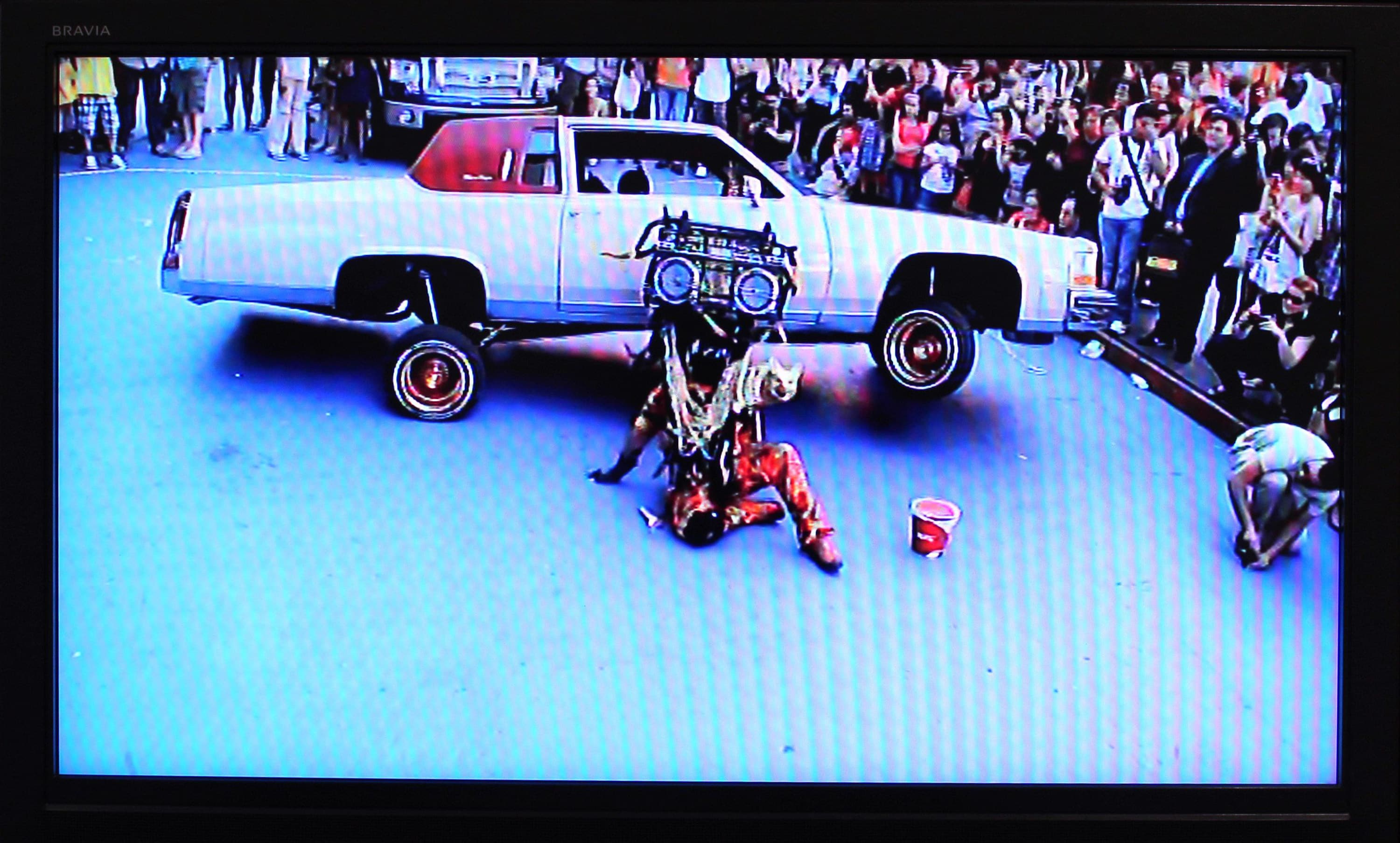 Irvin Climaco Morazan (New York, NY) creates fantastical sculptural headdresses that he wears during performances, photographs, and videos. He intertwines indigenous traditions with urban street aesthetics to create new personas that blur the boundaries of stereotypes. Consequently, the performances are often hybrid rituals intended to cross metaphysical spaces through spectacle and absurdity. The works draw upon multiple associations and meanings while valuing history, theory, and their relationship to contemporary culture. Street-ish features Cheesedoodle Headdress, a mixed media wearable sculpture, and videos and photographs of Morazan’s performances. Morazan was born in El Salvador and received his BFA from the School of Visual Arts and his MFA from Hunter College. Morazan has received several grants and awards, including the Robert Mapplethorpe Award for Photography. He has been included in exhibitions in Berlin, Mexico City, El Salvador, and Colombia. His New York exhibitions include Festival of New Ideas at The New Museum, La Mama Gallery, HVCCA Museum, Exit Art, Bronx River Arts Center, Jersey City Museum, Sean Kelly Gallery, DCKT Gallery, and Jack the Pelican Presents.