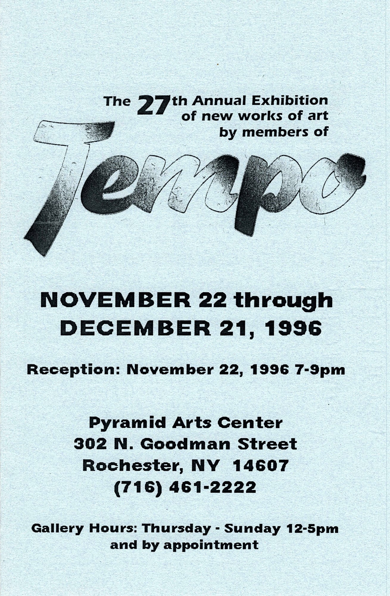 Tempo: The 27th Annual Exhibition is a group exhibition of twenty artists from Tempo, a group of female artists from the Upstate New York area. Their works include painting, photography, ceramics, cloisonné, and stained glass.