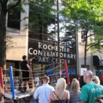 Abraham Ferraro (Troy, New York) is a sculptor and performance artist. His artworks are interactive performances which convey the struggle that artists undergo in order to perfect their craft. The pain that Ferraro endures becomes, in his eyes, equivalent to the pain artists must go through in order to create, promote, and sell their work.