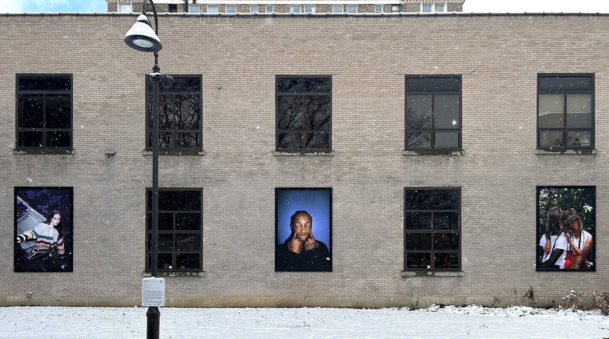 RoCo's latest public art project brings together three emerging photographers who are actively documenting the people of Rochester, NY. Pictured here are detail shots of the large, public installation installed outside RoCo and available to the public 24/7.