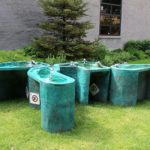 What You Put In is a large sculptural water feature that investigates water use in relation to the largest system of fresh water in the United States, the Great Lakes. The artist reminds us not to abuse fresh water by bringing these large bodies of water down to a human scale. The piece resembles a series of large sinks. At each major polluting city, a faucet pumps water into the lakes. By placing this artwork in a public, outdoor setting, the artist encourages neighbors and passers-by to become the stewards of these surrogate lakes and the Great Lakes.