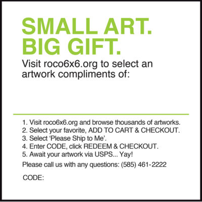 Give the gift of square art! Purchase a 6×6 gift card and let your loved one select from thousands of artworks. Includes artwork shipping fee.