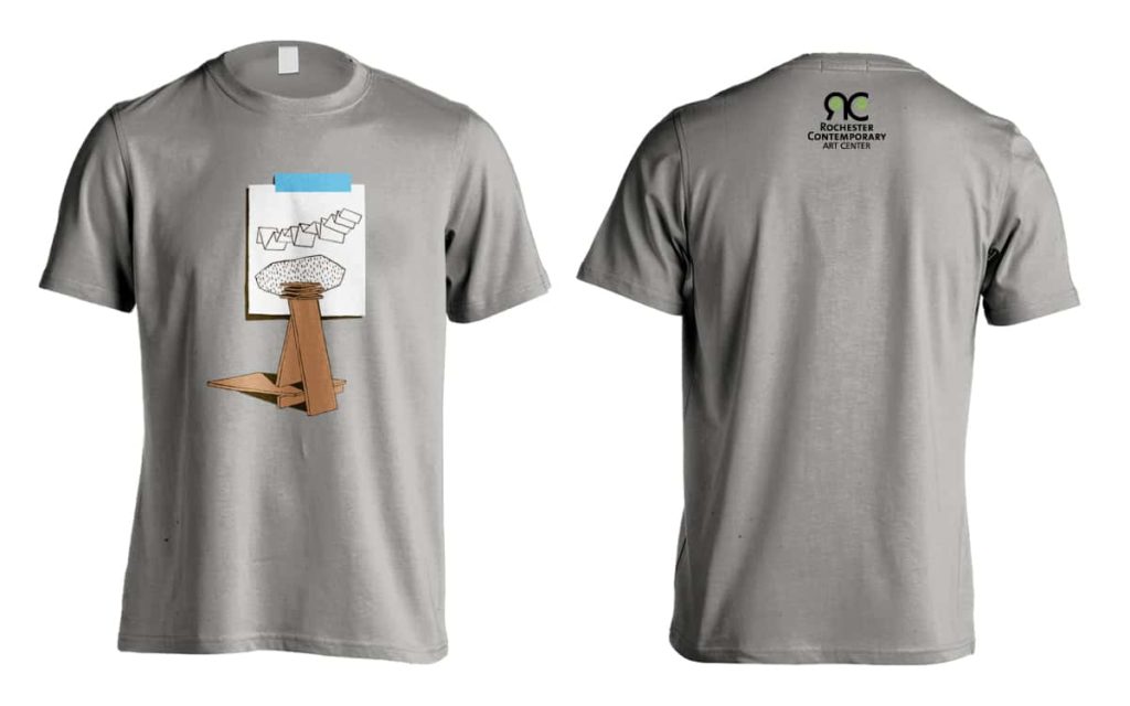 Limited edition RoCo Thredz graphic tee designed by Rochester-based printmaker, Heather Swenson. *Member Price: $40 (please call 585-461-2222) Model: The Artist